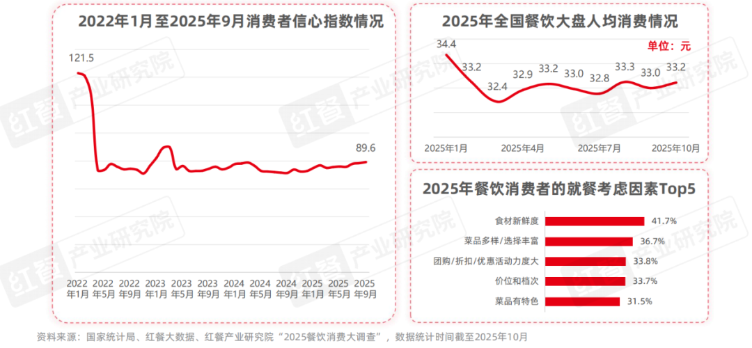 其一,消費者追求性價比的趨勢是推動小火鍋快速發(fā)展的重要因素。在2025年,全國餐飲大盤的人均消費經(jīng)歷了波動式下降,從2025年1月的34.4元下降至2025年10月的33.2元。