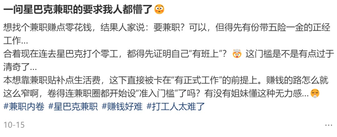 但在搶班制的游戲里,這個界限似乎變得非常模糊。那些為了多賺一點錢而一天搶三個班次、一周干滿七天的「巨無霸版兼職」,實際上是在以全職的工作強度,拿著兼職的時薪,且沒有任何全職應有的勞動保障。