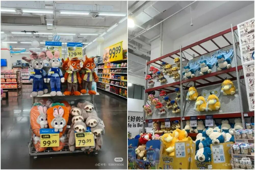 左圖為沃爾瑪玩偶區(qū)、右圖為山姆玩偶區(qū) 圖源:小紅書@桃氣椰椰、小紅書@橘子