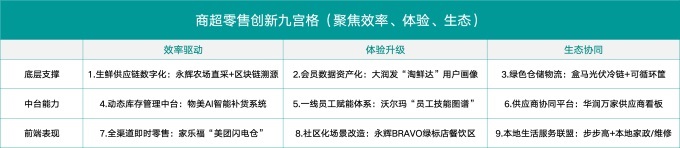以下是針對(duì)商超行業(yè)的零售創(chuàng)新九宮格實(shí)踐模版,結(jié)合了主導(dǎo)零售商案例,提煉出可落地的創(chuàng)新策略。