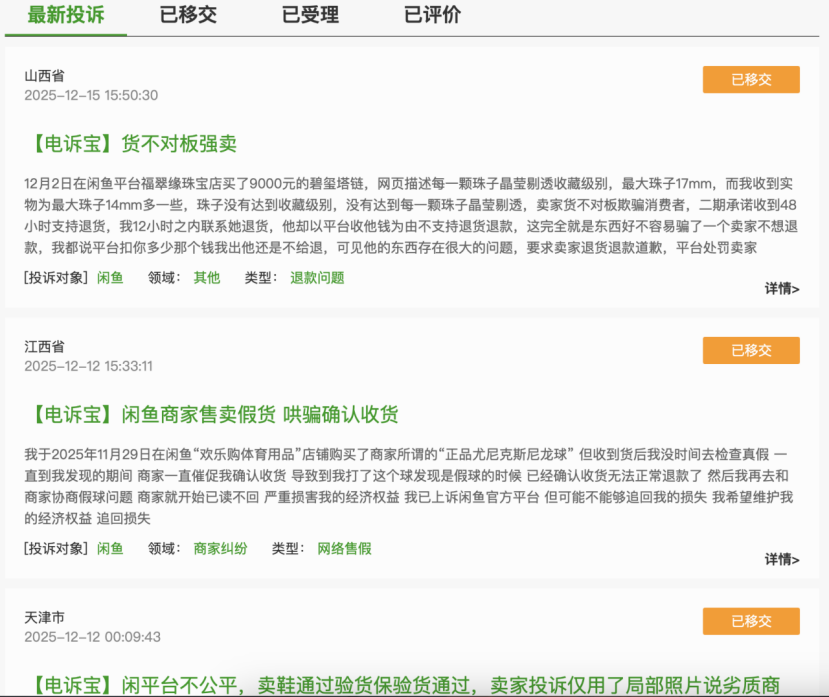 閑魚“電訴榜”