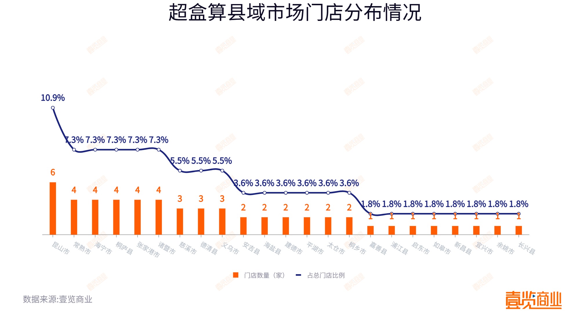 同時,超盒算也選擇高質(zhì)量地下沉,搶占縣域市場空白。377家門店中,55家門店分布在23個縣級市、縣城中,其中有19個縣市屬于全國百強縣,如昆山、張家港、常熟、慈溪等。