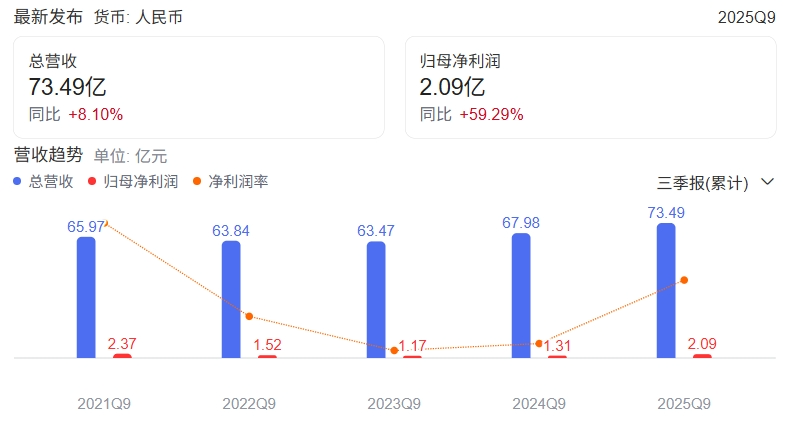 2025年前三季度,孩子王實(shí)現(xiàn)營(yíng)收73.49億元,同比增長(zhǎng)8.1%;歸母凈利潤(rùn)為2.09億元,同比增長(zhǎng)59.29%。