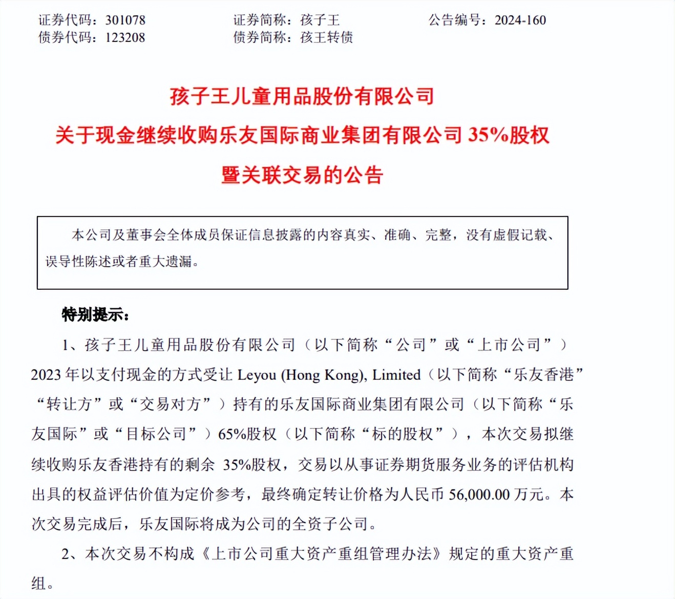 根據(jù)孩子王發(fā)布的公告,其收購(gòu)樂(lè)友國(guó)際已構(gòu)成關(guān)聯(lián)交易。樂(lè)友國(guó)際的股東樂(lè)友香港是美國(guó)華平投資集團(tuán)和/或關(guān)聯(lián)方控制的主體,而隸屬于美國(guó)華平投資集團(tuán)的CoralRoot,正是孩子王的發(fā)起人之一;而值得一提的是,CoralRoot從2023年11月就開(kāi)始減持孩子王股份。