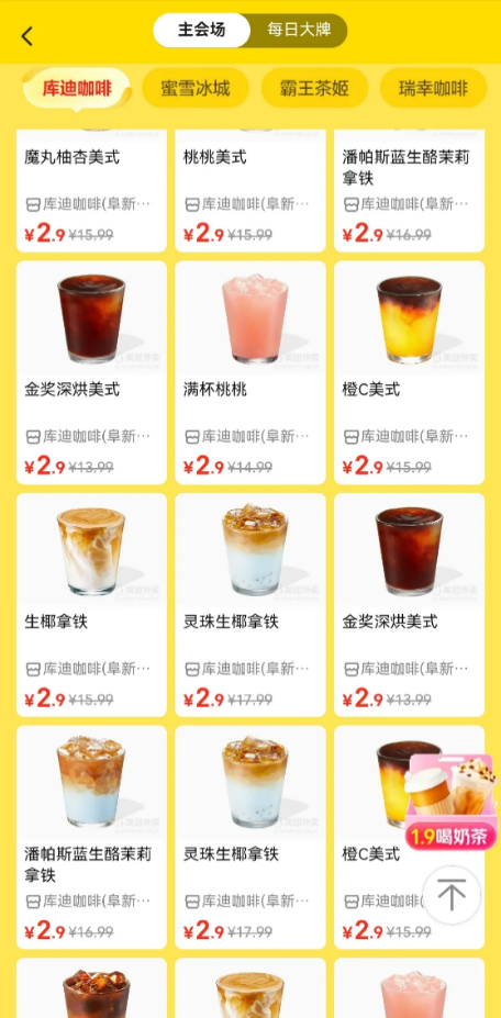 兩大巨頭同時(shí)發(fā)力,倒顯得主打低價(jià)位的幸運(yùn)咖沒那么便宜。今年6月,蜜雪冰城旗下幸運(yùn)咖宣布全場(chǎng)6.6元封頂;10月后,幸運(yùn)咖將咖啡售價(jià)調(diào)低至2.9元起。