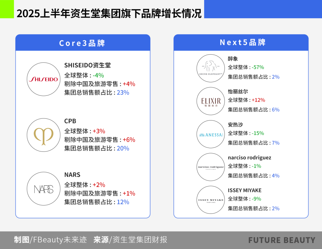 在集團(tuán)2024年明確的“中期戰(zhàn)略”中,NARS被擢升為與資生堂、肌膚之鑰(CPB)并列的三大核心品牌之一。這一地位之變,意味著在集團(tuán)整體面臨增長(zhǎng)壓力的背景下,NARS必須從一名杰出的“增長(zhǎng)貢獻(xiàn)者”,蛻變?yōu)榧缲?fù)重任的“增長(zhǎng)驅(qū)動(dòng)者”。
