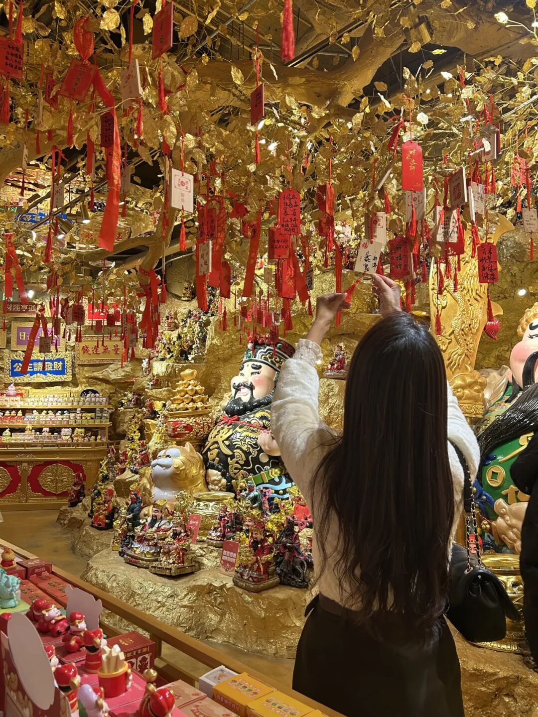 他從王府井站E1口出了地鐵,隨即推門(mén)進(jìn)入王府井喜悅。原本上樓找餐廳的他,卻被三樓一片金光截胡——里面的財(cái)神像正笑著沖他招手。