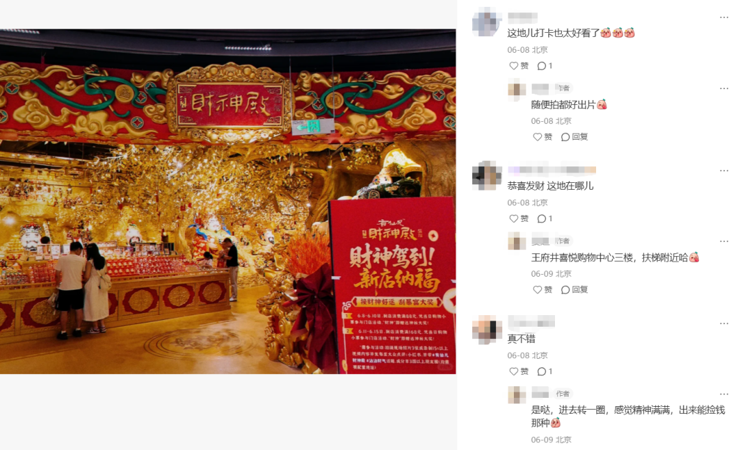 商業(yè)地產(chǎn)專家王國(guó)平告訴《降噪NoNoise》,當(dāng)前正處于「購(gòu)物中心文旅化」與「文旅項(xiàng)目購(gòu)物中心化」的業(yè)態(tài)融合期。購(gòu)物中心急需打造獨(dú)特景點(diǎn),以爭(zhēng)奪消費(fèi)者有限的注意力和更長(zhǎng)的停留時(shí)間。財(cái)神殿的模式,完美契合了這一訴求——它本身就是一個(gè)極具話題性的「景點(diǎn)」。