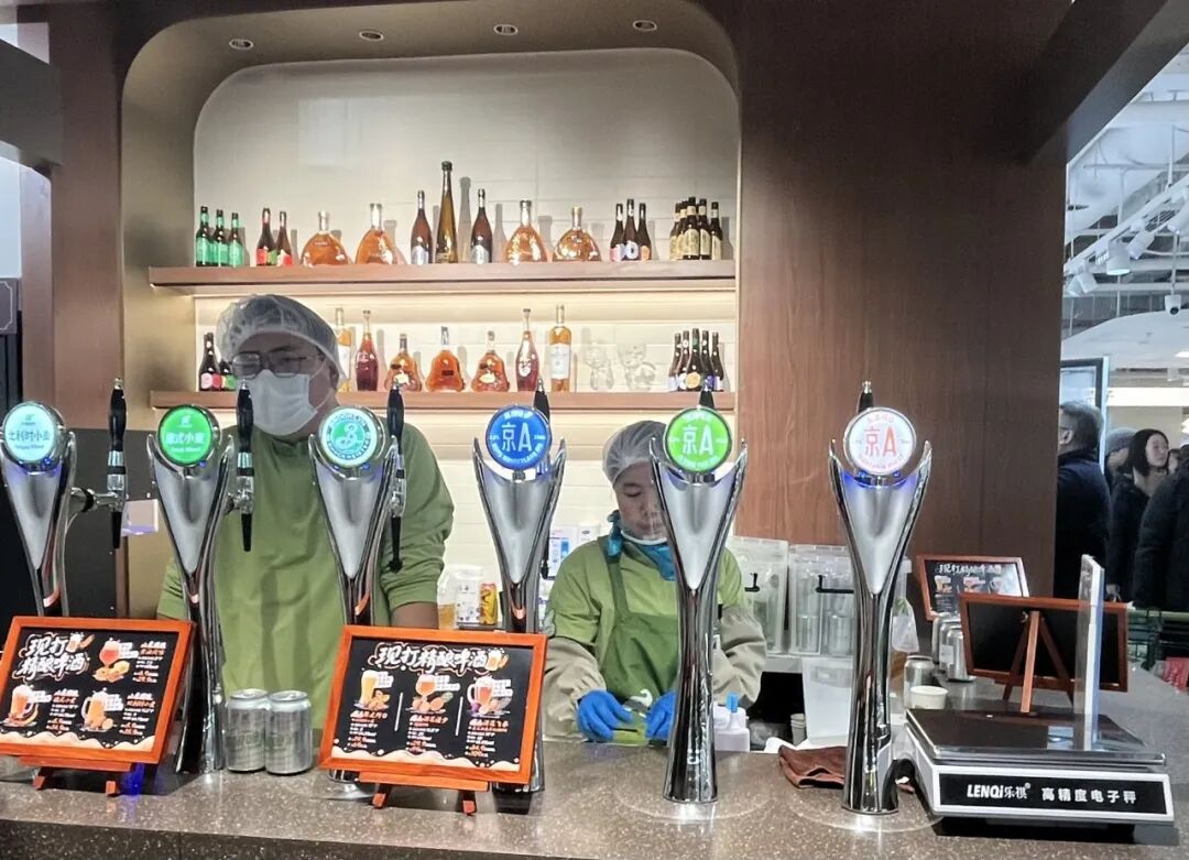 在線上購(gòu)物越來(lái)越便利的當(dāng)下,線下超市對(duì)消費(fèi)者的吸引力更多來(lái)自「逛」的感覺(jué)和對(duì)煙火氣的追尋。整體逛下來(lái),我們明顯感覺(jué)到,小象超市在有意增強(qiáng)「逛」的體驗(yàn)和煙火氣。前者是通過(guò)提供高品質(zhì)、差異化的產(chǎn)品和服務(wù)來(lái)實(shí)現(xiàn),后者則是利用面積更大的熟食區(qū)和現(xiàn)打精釀啤酒來(lái)強(qiáng)化迷你美食城的生活氛圍。