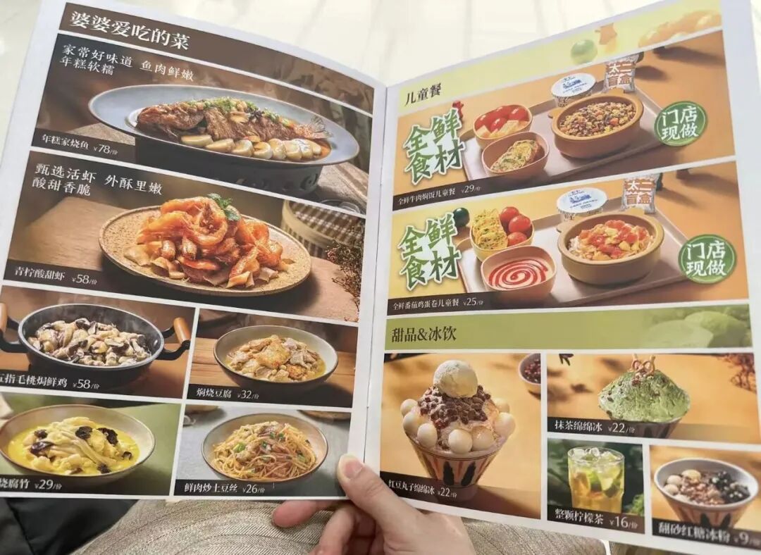 圍繞這五大核心食材,品牌共推出12道主打菜品,約占總SKU(約40種)的30%。其余產(chǎn)品則涵蓋家常菜、滋味湯品、特色小吃、“婆婆愛吃的菜”、兒童餐、主食及飲料甜品等,豐富度顯著提升。