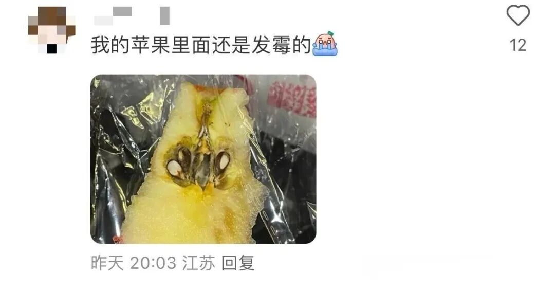 但是,這里有個問題被樂樂茶忽略了。有人反映,買到的“蘋果糖”的蘋果有蟲眼、發(fā)霉。