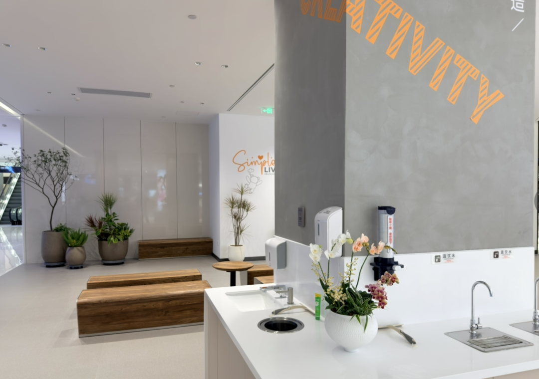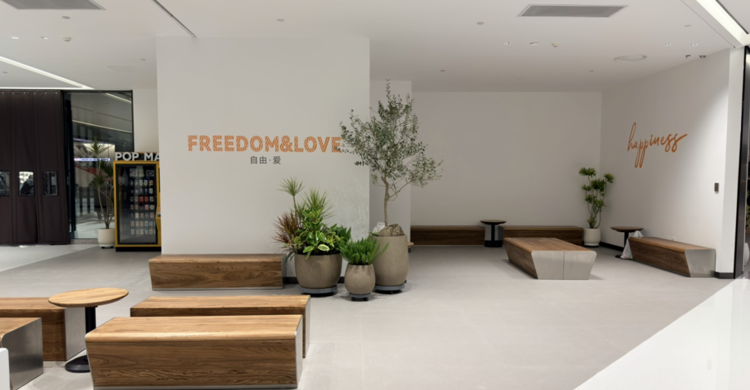 同時,在每一樓層精心設置的公共休息區(qū),也是胖東來服務理念的最好詮釋。以溫潤木質、簡約金屬與點綴其間的清新綠植共同構成的舒適空間,不僅為顧客在購物、游逛間隙提供了隨時放松的站點,這也暗藏了對消費體驗的深層升級——通過營造松弛的休憩場景,有效消解了傳統(tǒng)商業(yè)空間的“趕路感”,讓“逛”的節(jié)奏變得從容而舒展。這一設計不僅彰顯了品牌極致的人文關懷,也讓商場更具人情味,最終轉化為了持久的空間吸引力。