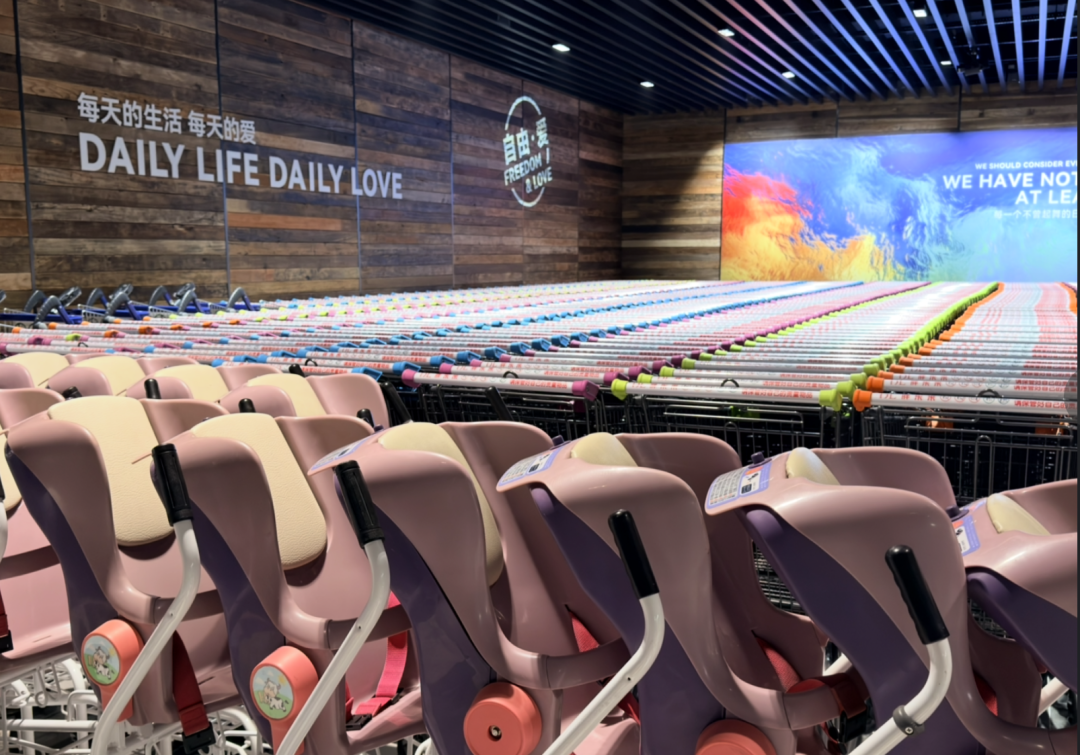 這里不僅延續(xù)了質高價優(yōu)的商品力,更將胖東來式的匠心服務與人文關懷融入每一個細節(jié):完備的便民設施從直飲水、醫(yī)藥箱覆蓋至充電寶、制冰機;僅購物車就精心準備了小號、老年專用、兒童以及嬰兒手推車四款,配合購物籃實現(xiàn)對全客層的細膩關照。