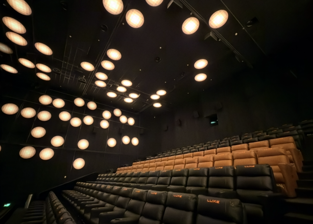 影城擁有3個普通廳和一個LUXE廳。其中,LUXE廳擁有巨幕及杜比全景聲音效,完全沉浸式音效體驗:從頭頂飛過的鳥或直升機,到從上方落下的雨水,到從任何方向擊中的雷電和閃電,都能產生高度準確的自然聆聽體驗。