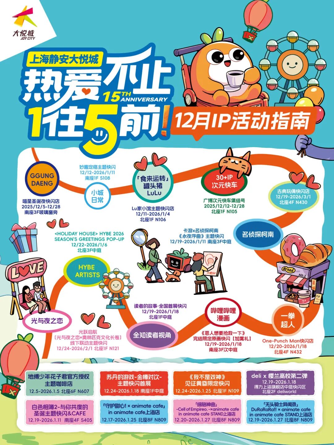 而在項目15周年之際,靜安大悅城還以一場涵蓋9大快閃,30大IP的“熱愛不止,1往5前”年末狂歡嘉年華,將這場雙向奔赴推向了新的高潮。