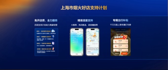在“煙火上海”發(fā)布會上,高德同步推出了上海市“煙火好店支持計(jì)劃”, 面向上海商家提供從新店入駐到經(jīng)營增長的全周期助力。本地新店入駐可享四大權(quán)益:免最高4800元首年開店費(fèi)、一對一專屬服務(wù)、門店信息優(yōu)化及新店補(bǔ)貼紅包。