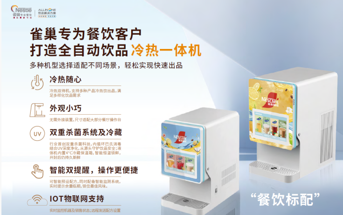 在這場“+飲品”的潮流中,雀巢專業(yè)餐飲飲品亦是以其深耕中國市場三十余年的專業(yè)積淀,展現(xiàn)出了作為行業(yè)伙伴的獨特價值。它基于對一線經營痛點的深刻理解,構建了一套從效率提升、產品創(chuàng)新、安全保障到體驗優(yōu)化的完整解決方案。