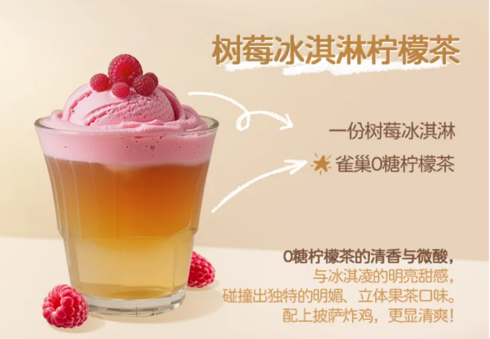 以比格比薩為例,在社交媒體上流傳的“比格必點清單”里,招牌披薩之外, “DIY飲品” 悄然走紅。“操作簡單、花樣多、不占肚子”,顧客用冰淇淋搭配雀巢風味茶飲,制作出如樹莓冰淇淋檸檬茶、雪頂茉莉茶拿鐵等高顏值特調,餐廳無需復雜加工就能提升用餐的趣味性和記憶點。