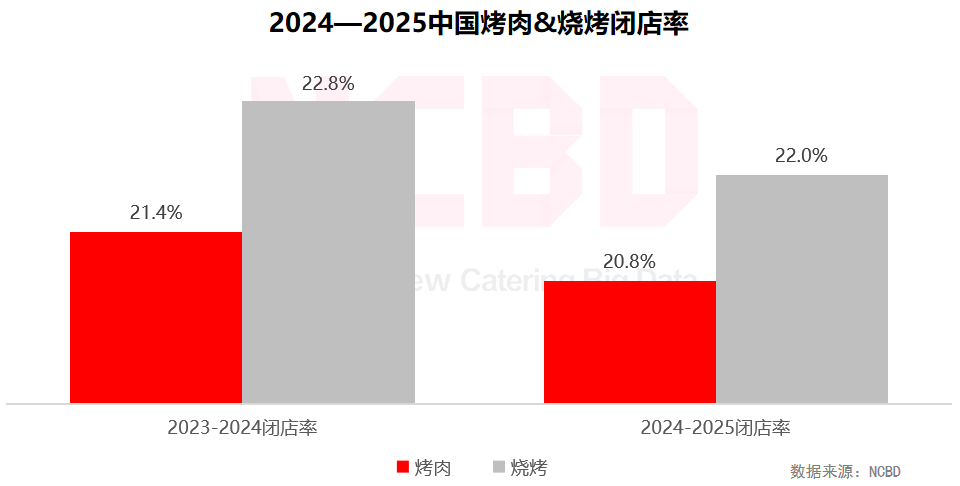 6、2024-2025年烤肉品類閉店率為20.8%,與上一年相比微降;與燒烤相比,烤肉的閉店率要略低