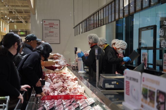 服務層面,肉禽水產區(qū)提供剔骨、切絲、殺魚、高端海鮮清洗打氧等標準化服務外,推出購買特定商品可享免費烤制、現(xiàn)煎等特色項目,如購買天農清遠走地雞可免費幫忙烤制;調理牛排、法式羊排提供免費現(xiàn)煎服務。同時嚴格執(zhí)行鮮度管理,現(xiàn)切水果推行“468原則”,制作完成4小時8折,6小時6折,8小時下架,對熟食、烘焙、肉類等部分產品推行限時折價與日清制度,確保商品品質。