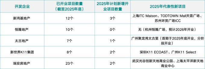 下表簡(jiǎn)要匯總了各企業(yè)截至2025年底的已開業(yè)項(xiàng)目數(shù)量及2025年的新增開業(yè)情況: