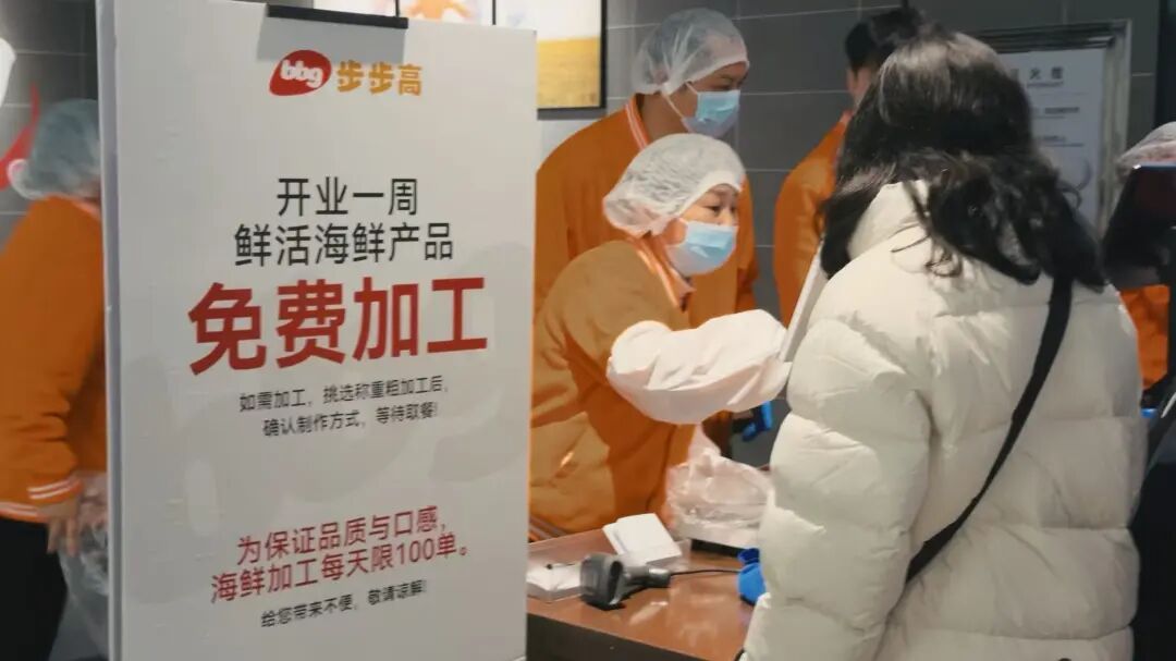 “鮮味廚房”海鮮專(zhuān)區(qū)是當(dāng)之無(wú)愧的核心亮點(diǎn),不僅匯聚全球鮮活海產(chǎn),更創(chuàng)新推出“即選、即烹、即享”服務(wù)——開(kāi)業(yè)7天免費(fèi)加工,清蒸、白灼、紅燒等多種做法全程明廚亮灶。