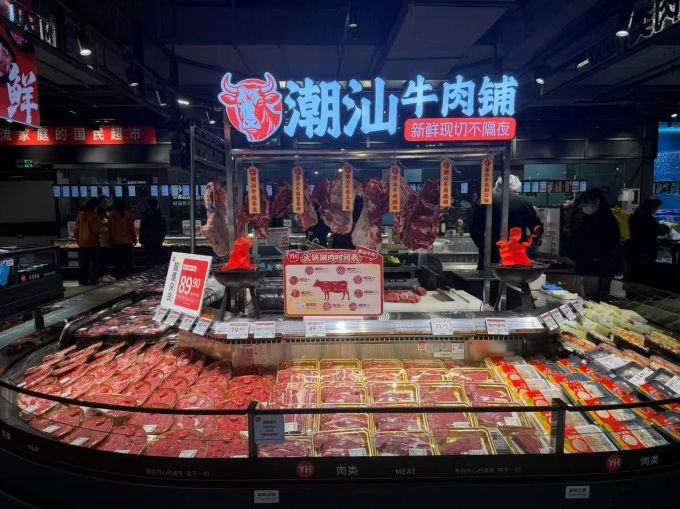 服務的溫度滲透于無數(shù)細節(jié)。門店增設顧客休息區(qū),配備身高測量儀、血壓儀、洗手池、直飲水、微波爐及免費使用1小時的充電寶。同時,門店增加深度加工服務:肉禽柜臺提供切絲、切片、絞肉、剝皮、剔骨等全方位服務;海鮮柜臺可為高端食材提供清洗、打氧,并提供活魚宰殺等服務。細節(jié)方面更顯貼心,調(diào)味貨架旁備有放大鏡方便老年人查看商品配料表;連卷袋處設置濕手器果切組合按甜度提示食用順序;紡織品區(qū)域放置隔離袋;試鞋區(qū)提供一次性襪套;收銀臺免費提供一次性耗材……這些看似微小的舉措,共同構(gòu)建了安全、安心、便利的購物體驗。