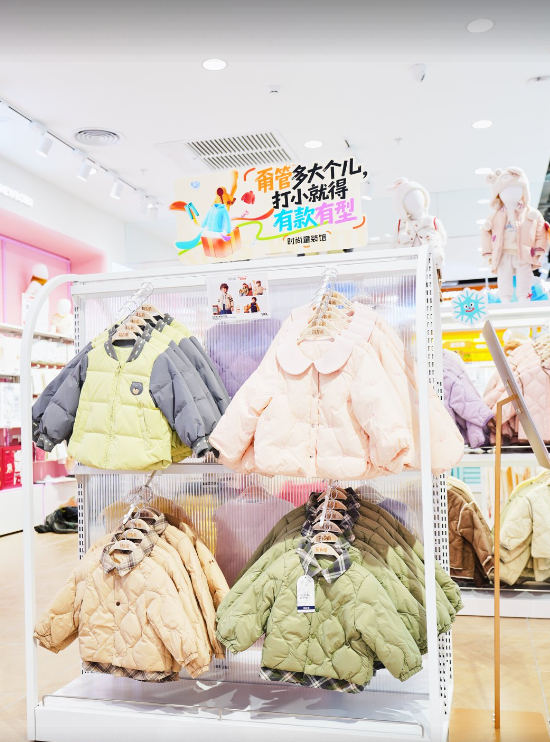 門店設(shè)計(jì)巧妙融入城市基因。門頭以現(xiàn)代剪影藝術(shù)呈現(xiàn)京城地標(biāo),店內(nèi)“甭管多大個(gè)兒,打小兒就得有款有型”等趣味slogan,在親切感中傳遞獨(dú)特的育兒生活態(tài)度。