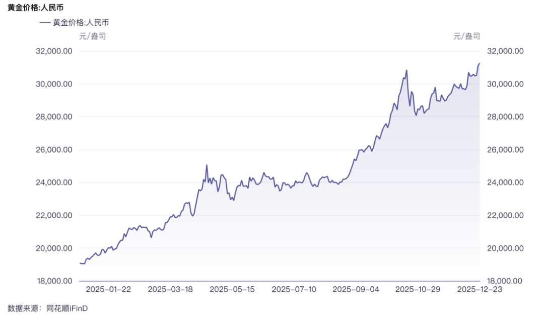 這一年,黃金價格瘋漲。據(jù)同花順iFinD數(shù)據(jù),黃金價格從年初的約2萬元/盎司一路飆升至如今的超3萬元/盎司。
