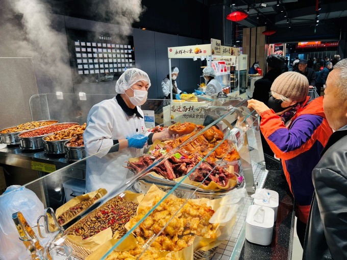 購物環(huán)境同步煥然一新。通過取消強制動線、拓寬通道、降低貨架高度,營造出開闊通透的輕松氛圍。服務的溫度藏于細節(jié):增設配備直飲水、微波爐、充電寶的顧客休息區(qū);提供肉禽切配、海鮮加工等免費深度服務;在調(diào)味區(qū)備放大鏡、試鞋區(qū)提供一次性襪套……全方位構建安心、便利的購物體驗。