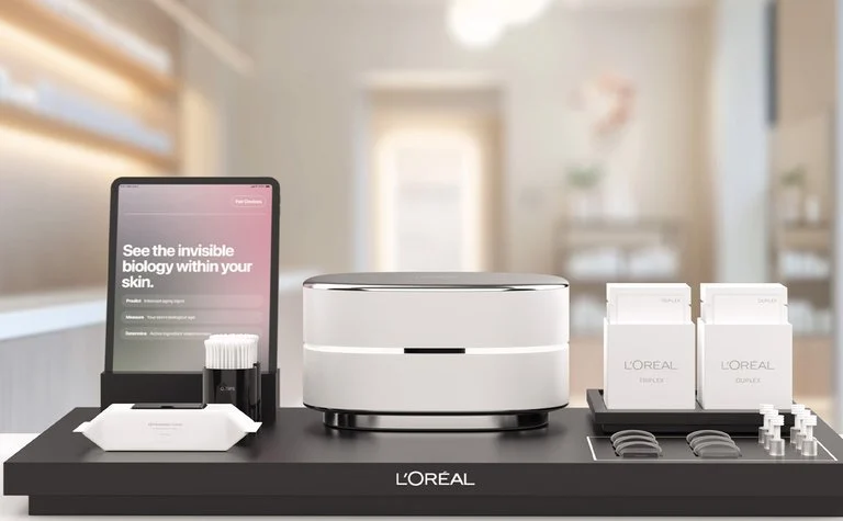 同時(shí),AI的發(fā)展也推動(dòng)了美妝品牌推出相關(guān)技術(shù)產(chǎn)品,虛擬試妝、AI皮膚診斷等工具也被品牌用以提升用戶粘性。在CES 2025展會(huì)上,歐萊雅推出了可讀取情緒的AR試妝鏡Mood Mirror,以及通過芯片分析皮膚蛋白信息、提供個(gè)性化護(hù)膚建議的皮膚組合分析儀Cell BioPrint,以AR/VR技術(shù)進(jìn)一步提升技術(shù)美妝的底層能力。