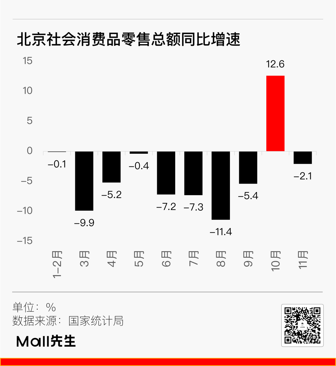 北京除了10月份增長了一把之外,全年都在“負增長”區(qū)間里,截止11月份的表現(xiàn)是同比下跌3.1%。