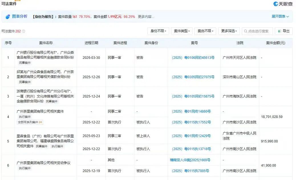 廣州茶里集團(tuán)有限公司相關(guān)法律訴訟 圖源:天眼查