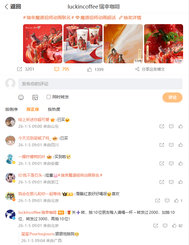 2026開年的首次營(yíng)銷,瑞幸選擇和《魔道祖師》動(dòng)畫聯(lián)名,主推非咖飲品,本質(zhì)上是這條戰(zhàn)略線上的又一個(gè)重要節(jié)點(diǎn)。