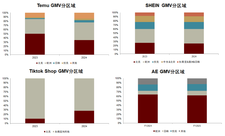 (圖表:主要出海電商平臺分區(qū)域GMV,來自中金公司研究部)