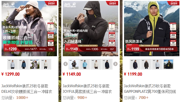 據(jù)源Sight了解,以沖鋒衣為例,狼爪品牌的沖鋒衣目前價格主要在400-3000元,熱銷款式價位在1000元左右;哥倫比亞沖鋒衣價格在400-3500元價格帶,熱銷款式在800-1500元左右;北面沖鋒衣熱銷價位在1000-2000元,其高端專業(yè)的巔峰系列,可沖價至8000元左右。