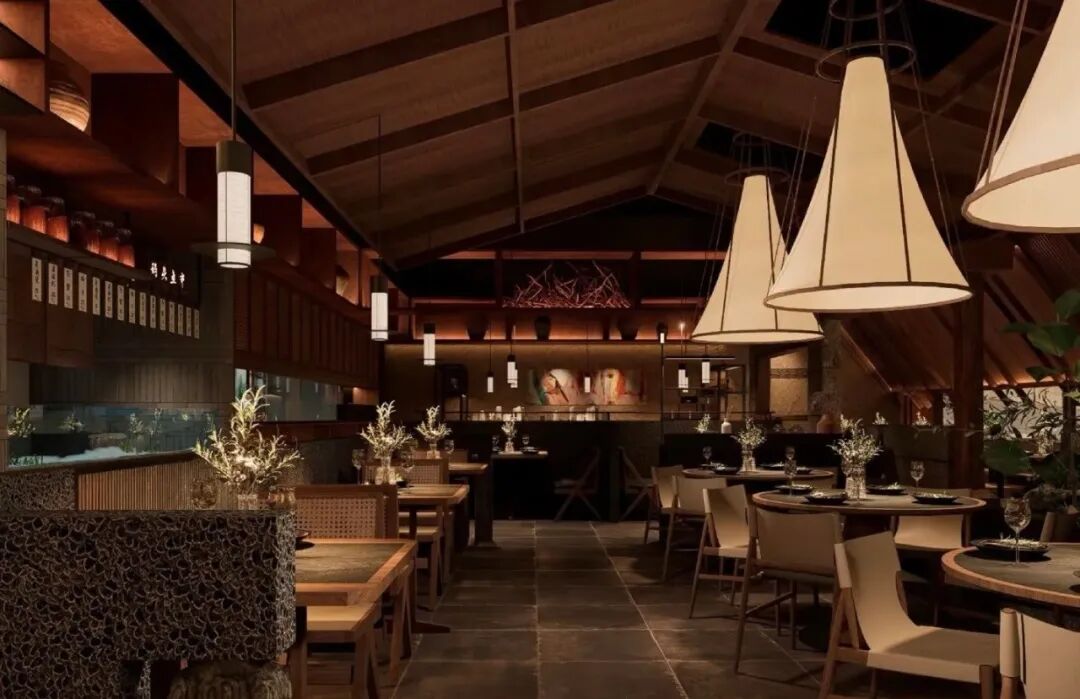 比如胡恰·景德江西菜將景德鎮(zhèn)的“瓷窯”元素植入明廚亮檔,利用質樸青磚搭配手工陶瓷,讓客人仿佛置身贛北的青磚黛瓦中;云貴菜品牌貴Guui則將苗族銀飾、蠟染布料等民族元素搬進門店,讓餐廳成為一張地域文化名片;而主打寧波海鮮的甬江煙火,則提取漁船、礁石、灘涂等海岸標識,以原木、粗石、竹編與植物交織布局,還原了閑適優(yōu)雅的海邊氣息。