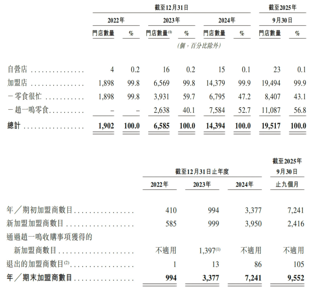 最新招股書(shū)數(shù)據(jù)顯示,2022年至2024年,鳴鳴很忙分別實(shí)現(xiàn)營(yíng)收42.86億元、102.95億元、393.44億元,三年復(fù)合增速達(dá)203%;經(jīng)調(diào)整凈利潤(rùn)同步從0.81億元增至9.13億元,三年復(fù)合增速達(dá)234.6%。截至2025年9月30日,公司全國(guó)在營(yíng)門店數(shù)已達(dá)19517家,覆蓋全國(guó)28個(gè)省份和所有線級(jí)城市,下沉市場(chǎng)滲透率高達(dá)66%,成為首個(gè)實(shí)現(xiàn)“縣縣有門店”的量販零食品牌。2025年前三季度,公司實(shí)現(xiàn)營(yíng)收463.71億元、GMV 661億元,分別較上年同期增長(zhǎng)75.2%和74.5%,經(jīng)調(diào)整凈利潤(rùn)18.10億元,同比大幅增長(zhǎng)240.8%,接待消費(fèi)者達(dá)21億人次,各項(xiàng)核心指標(biāo)均超2024年全年。