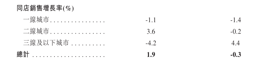 另一重壓力來自同店銷售表現(xiàn)。COMMUNE幻師2024年整體同店銷售額雖有微增,但在2025年前九個月,同店銷售額較去年同期出現(xiàn)了0.3%的負(fù)增長。分城市層級來看,一線城市的同店銷售增長率在2024年和2025年前九個月均處于負(fù)值區(qū)間。