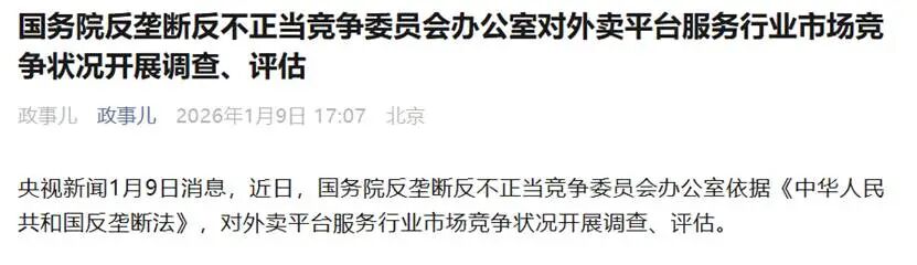 國務(wù)院反壟斷反不正當(dāng)競爭委員會(huì)在1月9日發(fā)聲,除為今年外賣市場反內(nèi)卷定調(diào)外,另一潛在原因是淘寶在1月8日的交流中表達(dá)了加大投入的意向。監(jiān)管層顯然不愿讓外賣大戰(zhàn)再度成為2026年的主題詞。