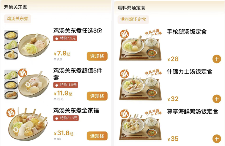但在新店型中,它被升級為“雞湯關(guān)東煮”,主打“慢熬一口鮮”。