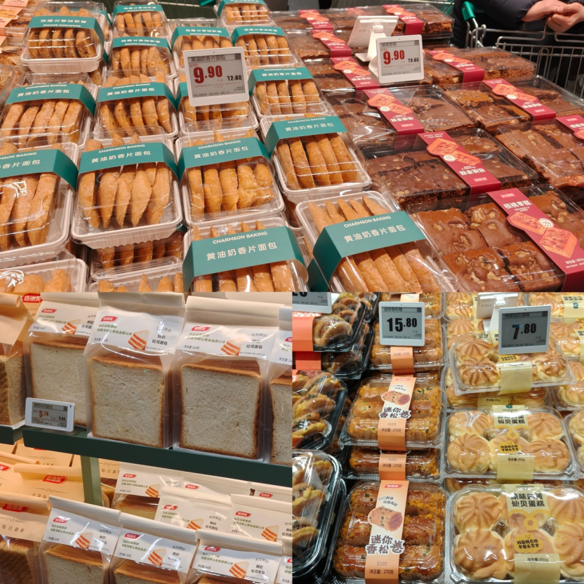 圖:長申超市鄭州錦藝城店的部分烘焙商品