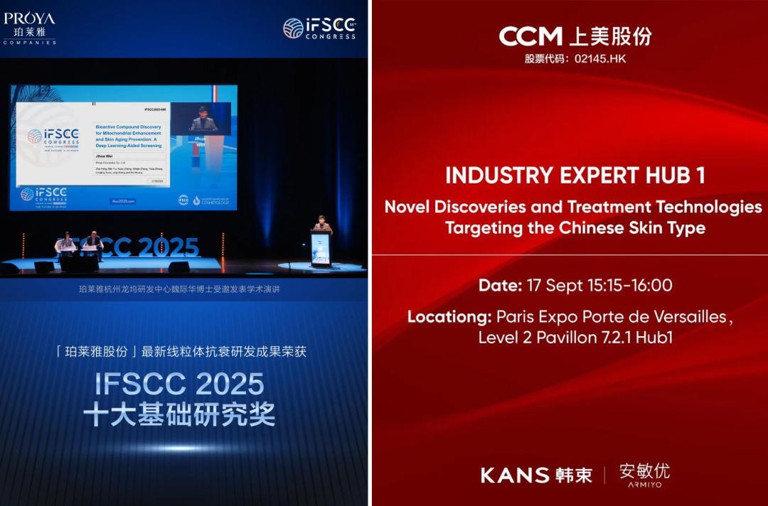2025年9月,兩家頭部企業(yè)不約而同地完成立威動作,爭奪全球科研體系的“官方認證”。珀萊雅獲得國際化妝品科技聯(lián)盟十大基礎研究獎,成為該年度唯一獲此獎項的中國化妝品企業(yè)。上美股份則登上歐洲皮膚病與性病學會年會,成為首個參會的中國美妝企業(yè)。