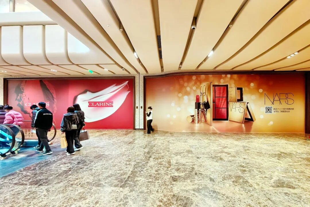 如一樓圍擋約一年的國際一線品牌,均無進(jìn)場施工的跡象;負(fù)一樓「似已成型」的國際美妝區(qū),則插入些許潮牌與快時(shí)尚品牌;甚至是高奢品牌圍擋前的綠植,也呈現(xiàn)一幅褪去生機(jī)的黯然模樣。