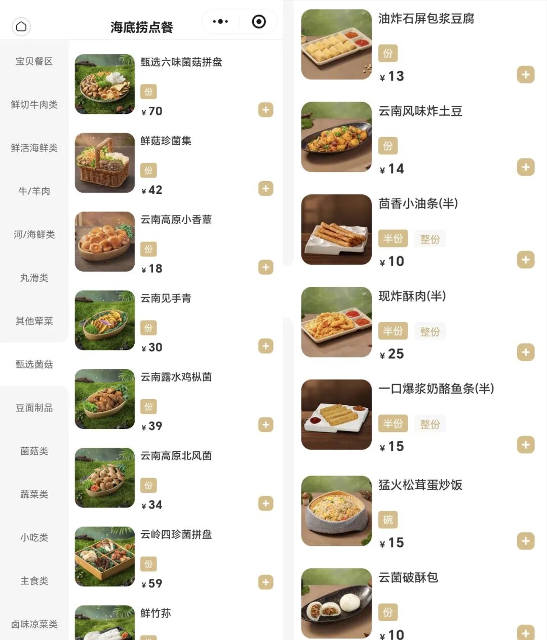 如果說此前的牛肉、羊肉、海鮮工坊是海底撈對成熟食材品類的細分探索,那這次菌菇工坊的亮相,顯然是其將目光投向地域特色食材的全新嘗試。