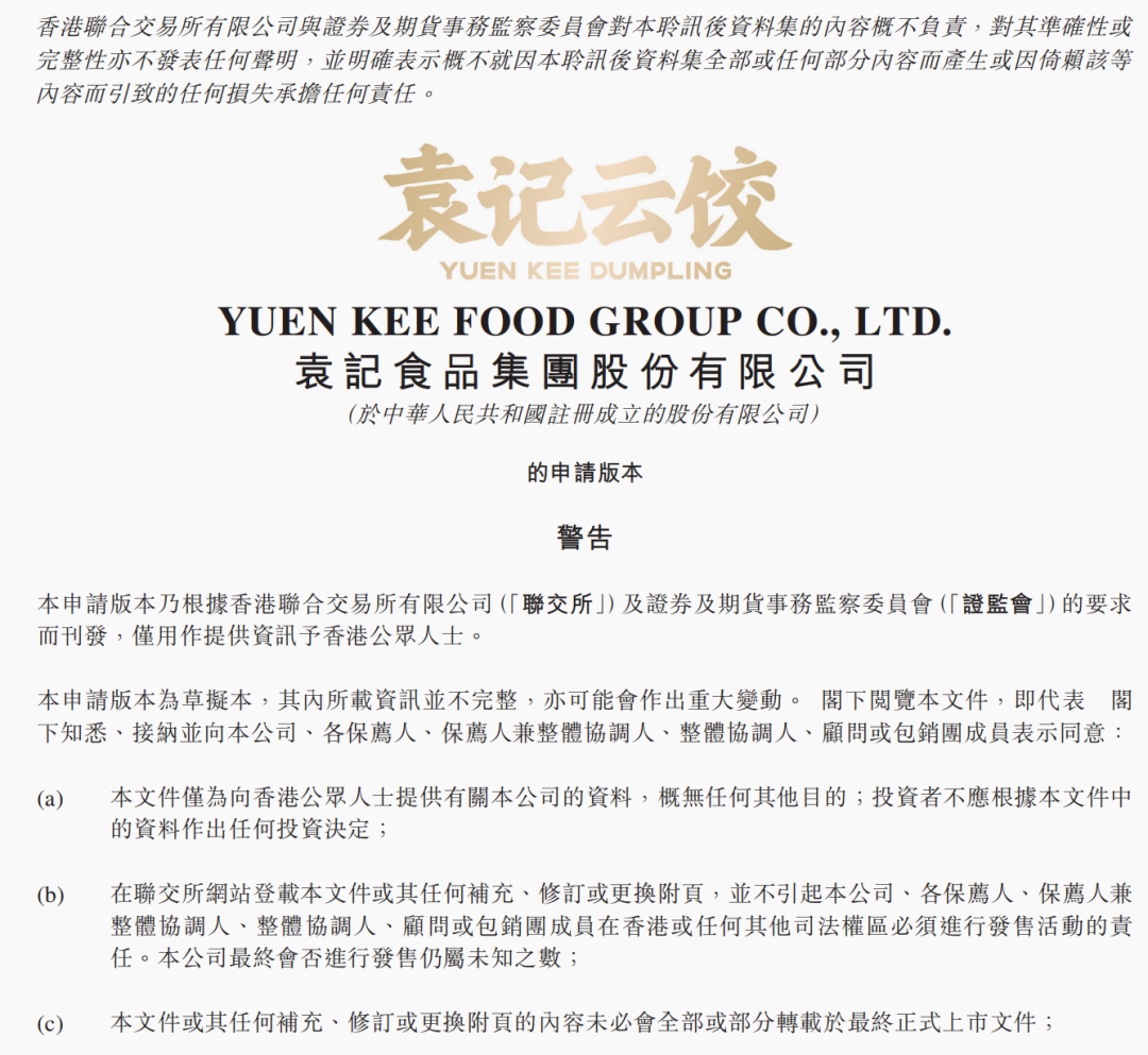 1月12日,袁記食品集團(tuán)股份有限公司(以下簡(jiǎn)稱“袁記食品”)正式向香港聯(lián)合交易所遞交主板上市申請(qǐng)。