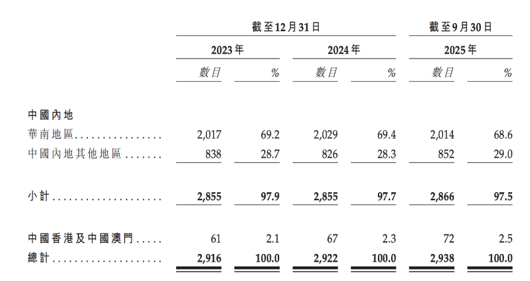 華南地區(qū)門店分布的緊密,也帶來了供應(yīng)鏈效率的提升。2023年、2024年及2025年前9個(gè)月,華南地區(qū)的銷售毛利率分別為11.4%、11.5%及12.5%,高于全國(guó)平均水平。