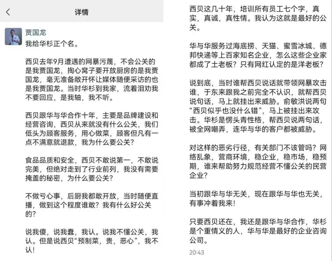賈國龍自述中,華杉都去他家里“流著淚勸我不要回應,是我軸,我不聽”。你老板沒有一點點公關意識,再好的公關部能做什么?