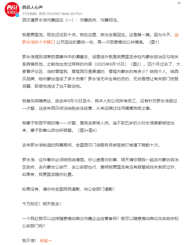 且不論這點事在老羅履歷中值不值得單寫一頁,只能說不愧是賈國龍,這125天的積累下依然選擇了做自己!仿佛又回到了125天前,那個拼著生意不做了也要爭個對錯的“江湖大哥”。