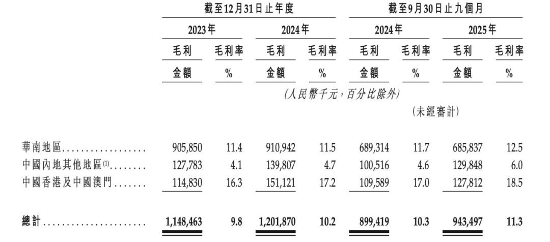 毛利率角度看,錢大媽在華南地區(qū)為12.5%,而內(nèi)地其他地區(qū)僅6%。